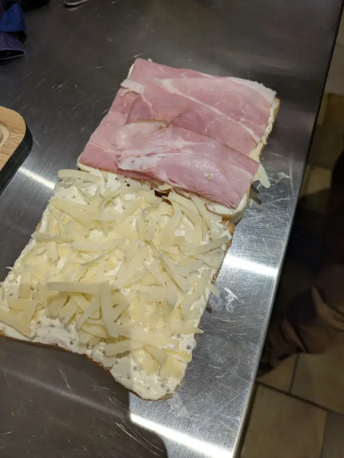 Les croque-monsieur de Patrice reposent sur une sélection rigoureuse de produits locaux : jambon fumé du Haut-Doubs, comté AOP, légumes de saison… Le tout préparé maison, avec une attention particulière portée aux saveurs et à la qualité.